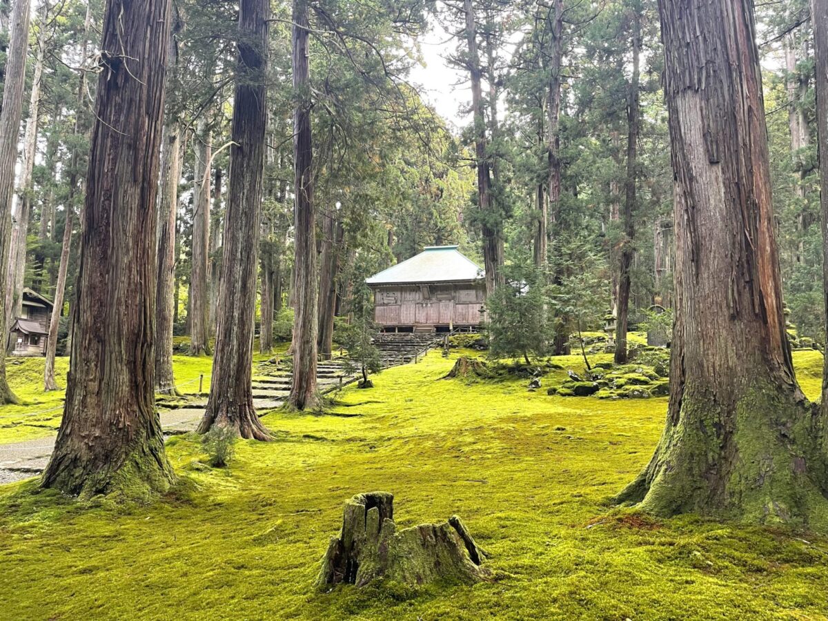 Di pagi hari, kami mengunjungi Kuil Heisenji Hakusan, sebuah kompleks tenang yang terletak tinggi di tengah hutan cedar. Jalan menuju kuil dilapisi dengan bebatuan berlumut dan sinar lembut sinar matahari menembus pepohonan, memberikan seluruh lanskap cahaya seperti mimpi. Konon pada tahun 717, biksu Taichō Daishi singgah di kolam di sini dan dikunjungi oleh dewi Gunung Hakusan (Izanami-no-Mikoto, dewi penciptaan Shinto, juga dikenal sebagai Myōri Daigongen), yang mendesaknya untuk mendaki gunung suci tersebut. Ini tetap menjadi legenda yang sepertinya masih melekat di sini. Jalan-jalan ini sangat menyegarkan dan indah – lebih baik daripada kopi pagi mana pun.