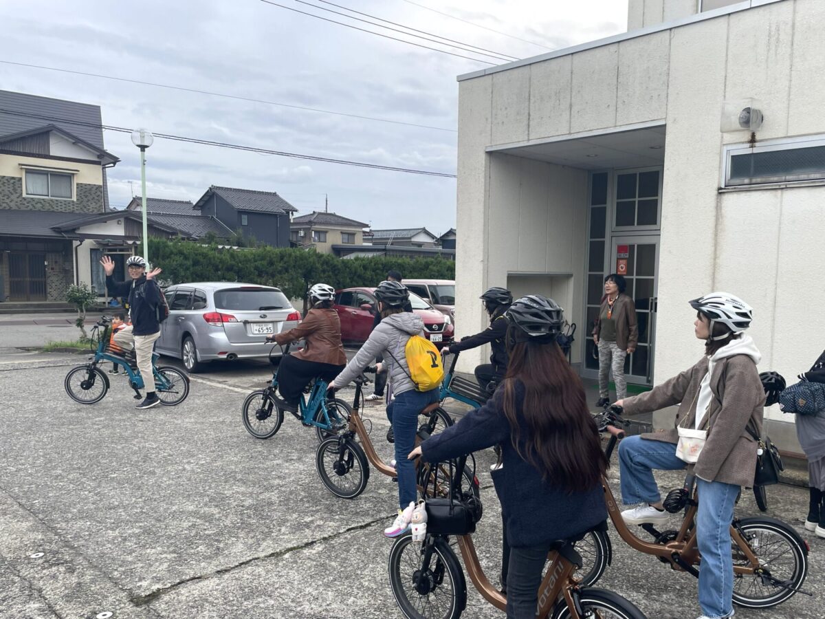 Di luar bengkel dan pabriknya, Katsuyama mengungkapkan sisi yang lebih lembut; yang dibentuk oleh udara hutan, lonceng kuil, dan jalan lambat dan indah paling baik dijelajahi dengan dua roda. Kelompok kami menggunakan sepeda elektronik untuk melakukan perjalanan antar pemberhentian, meluncur melewati sawah dan sungai yang tenang saat pegunungan di sekitarnya masuk dan keluar dari pandangan. Ini adalah cara yang damai dan menyegarkan untuk menjelajahi kota dan jenis perjalanan yang membuat Anda benar-benar merasakan suasana pedesaan Fukui.